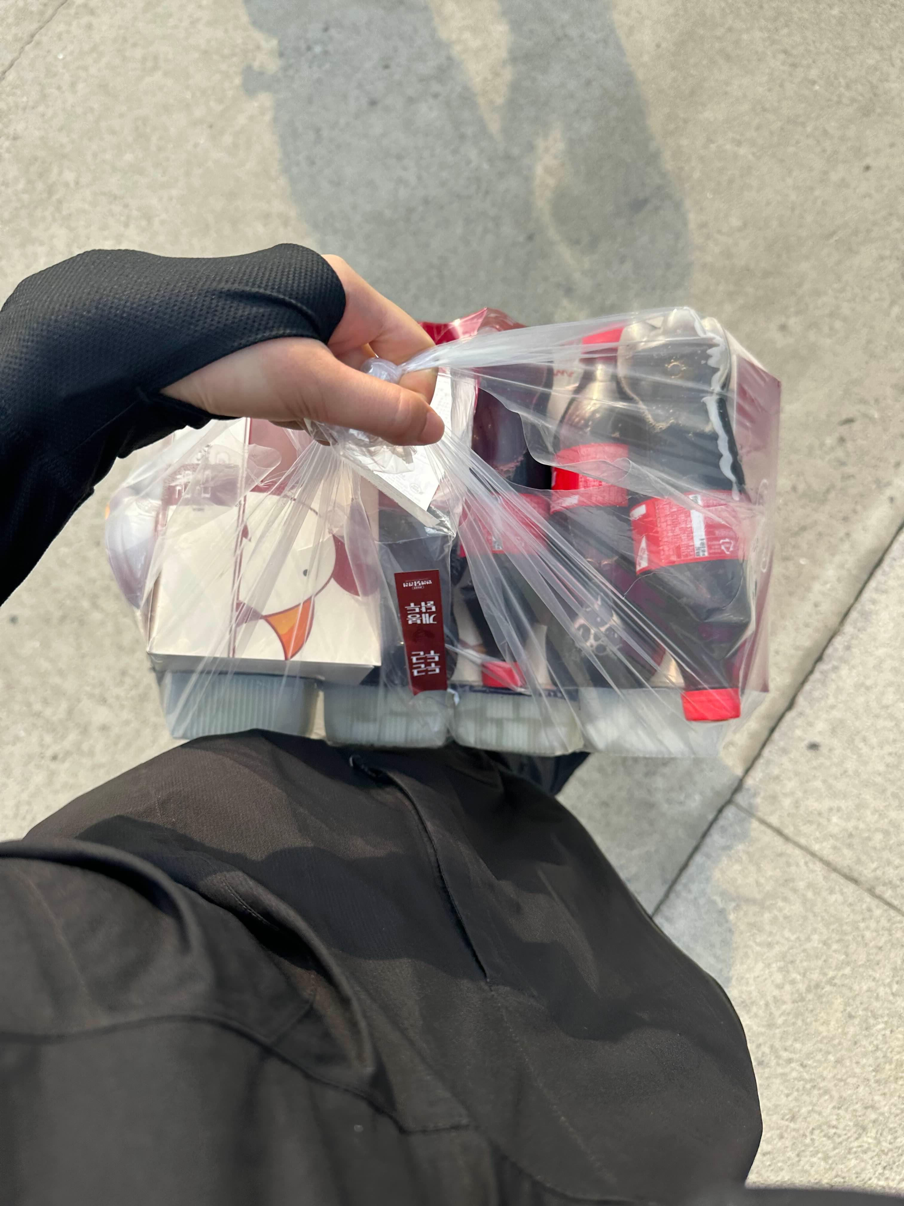 에고고 당이떨어져서 땅바닥에서 데우지도 않은 김밥으로 식사를 하는데