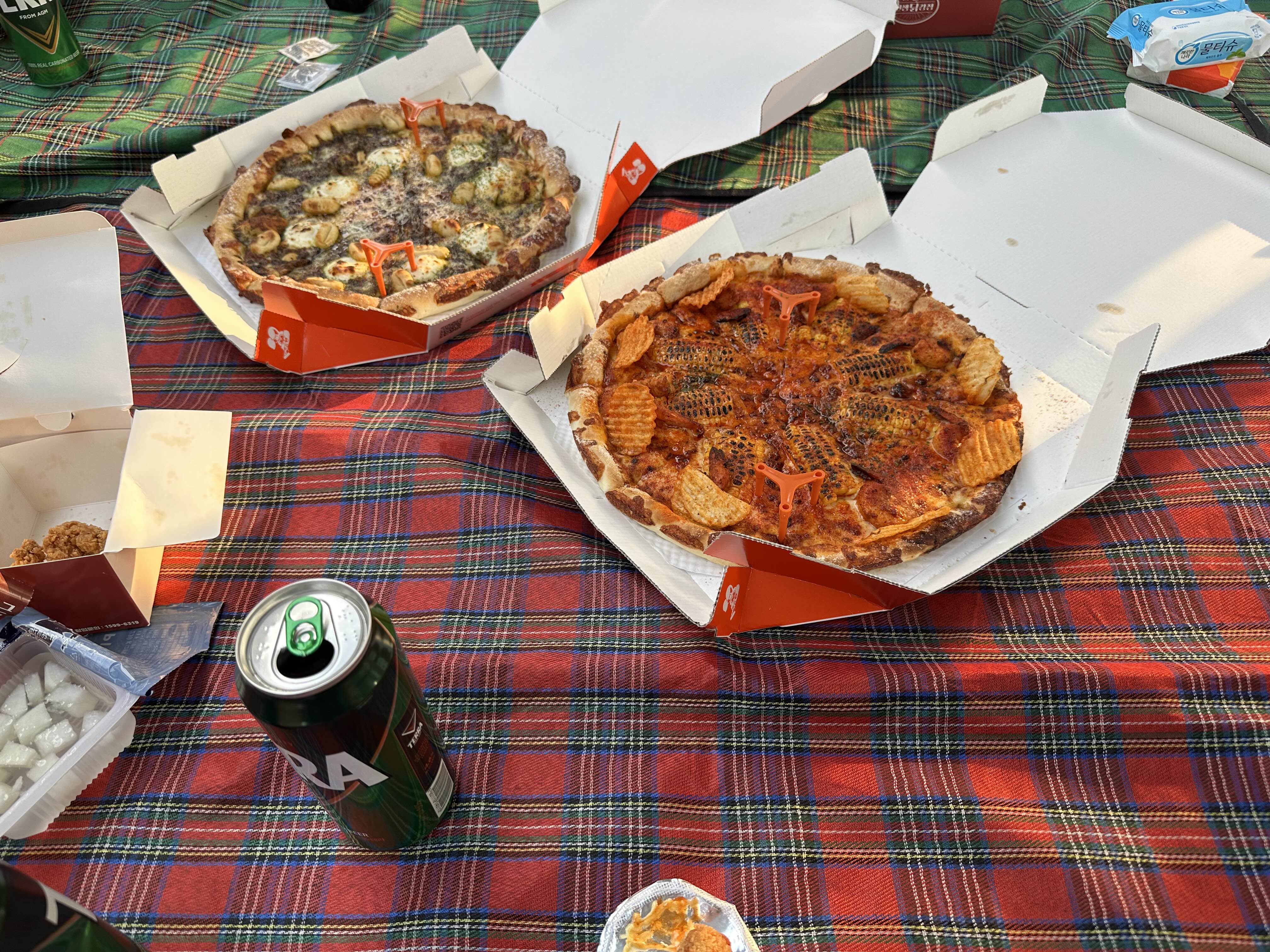 뒤풀이는 닭강정과 피자와 맥주 간단히 먹고 시마이~