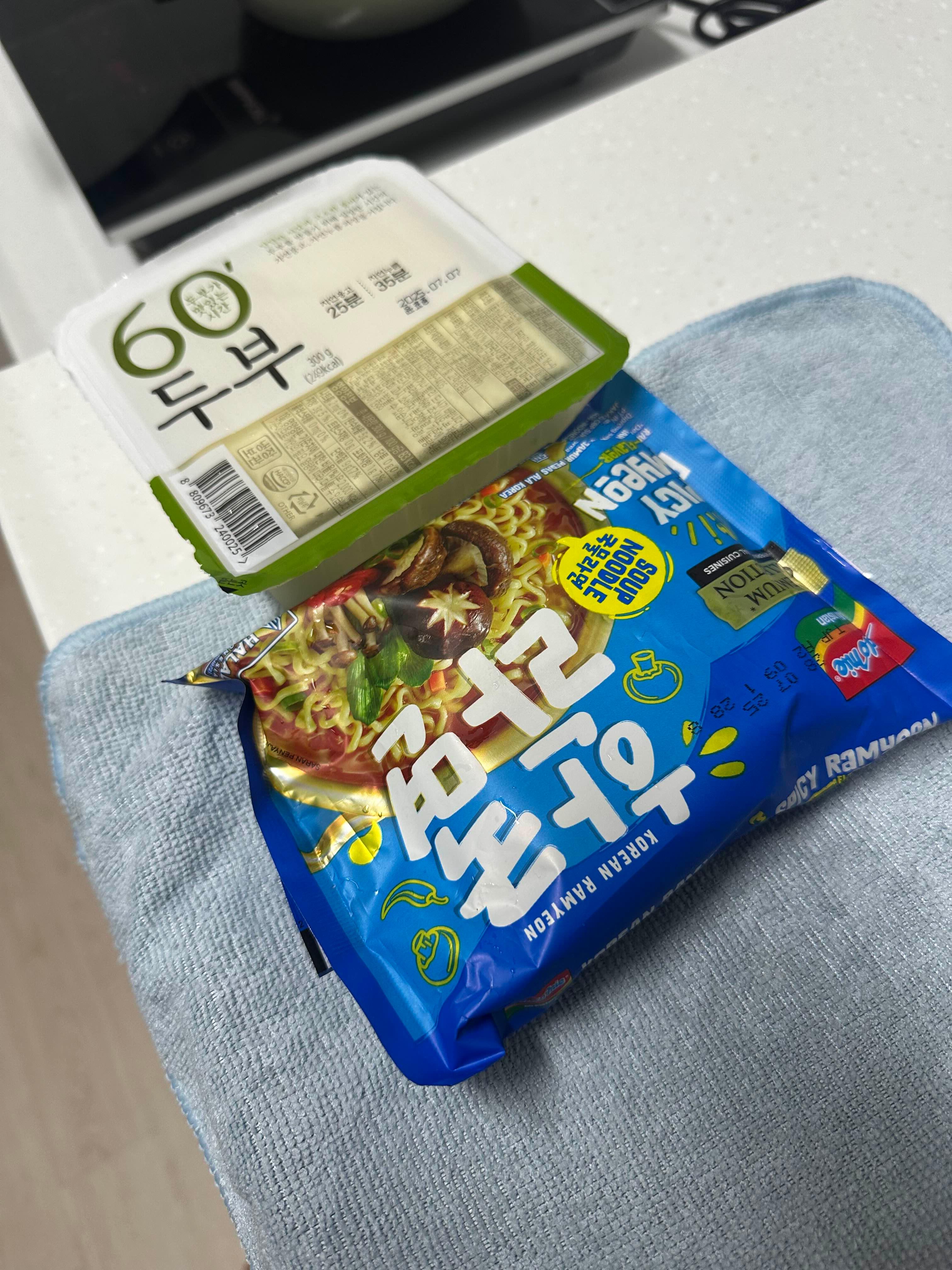 저녁으로는 선물받은 인도네시아산 한국라면+단백질 보충을 위한 두부가 되시겠습니다.