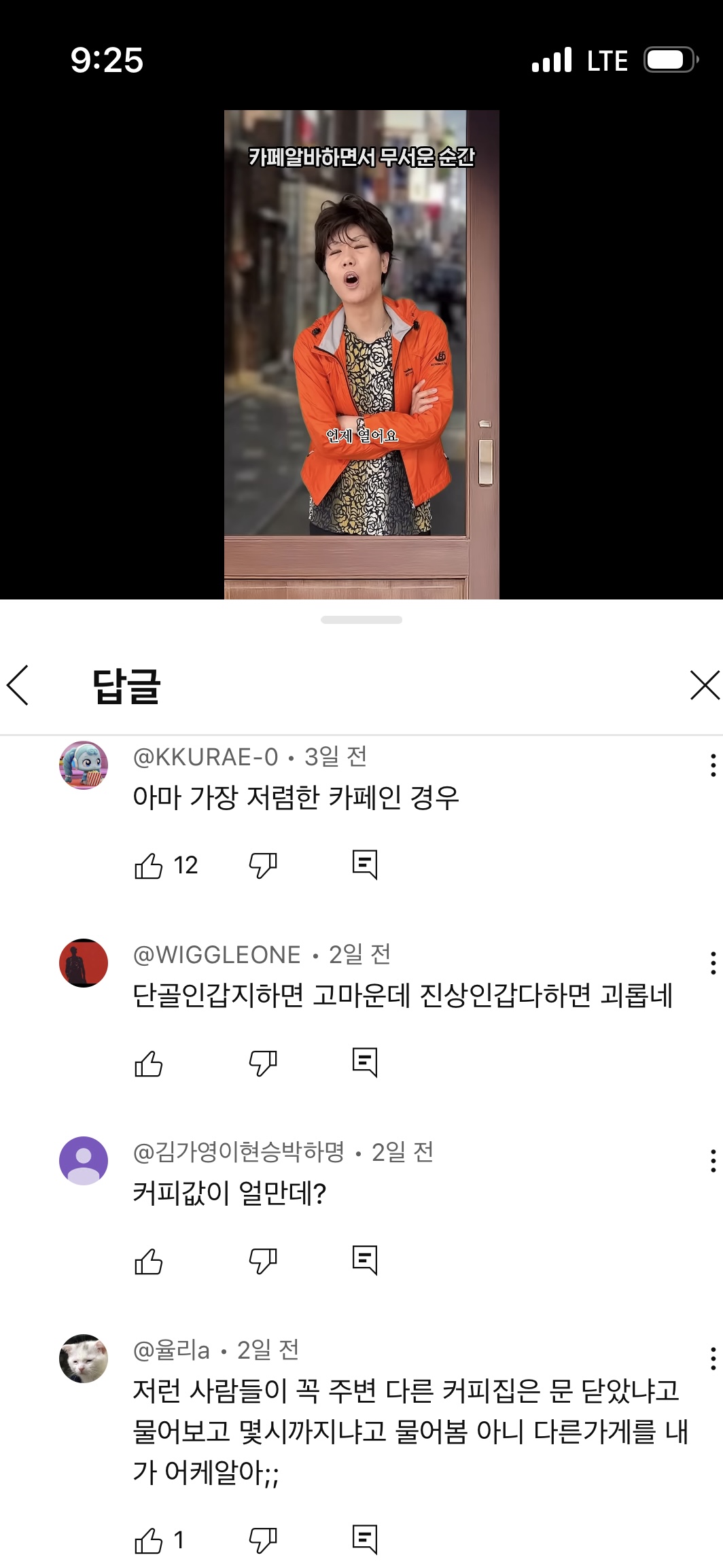기차 타고 오면서 [카페알바하면서 무서운 순간] 쇼츠를 보는데,