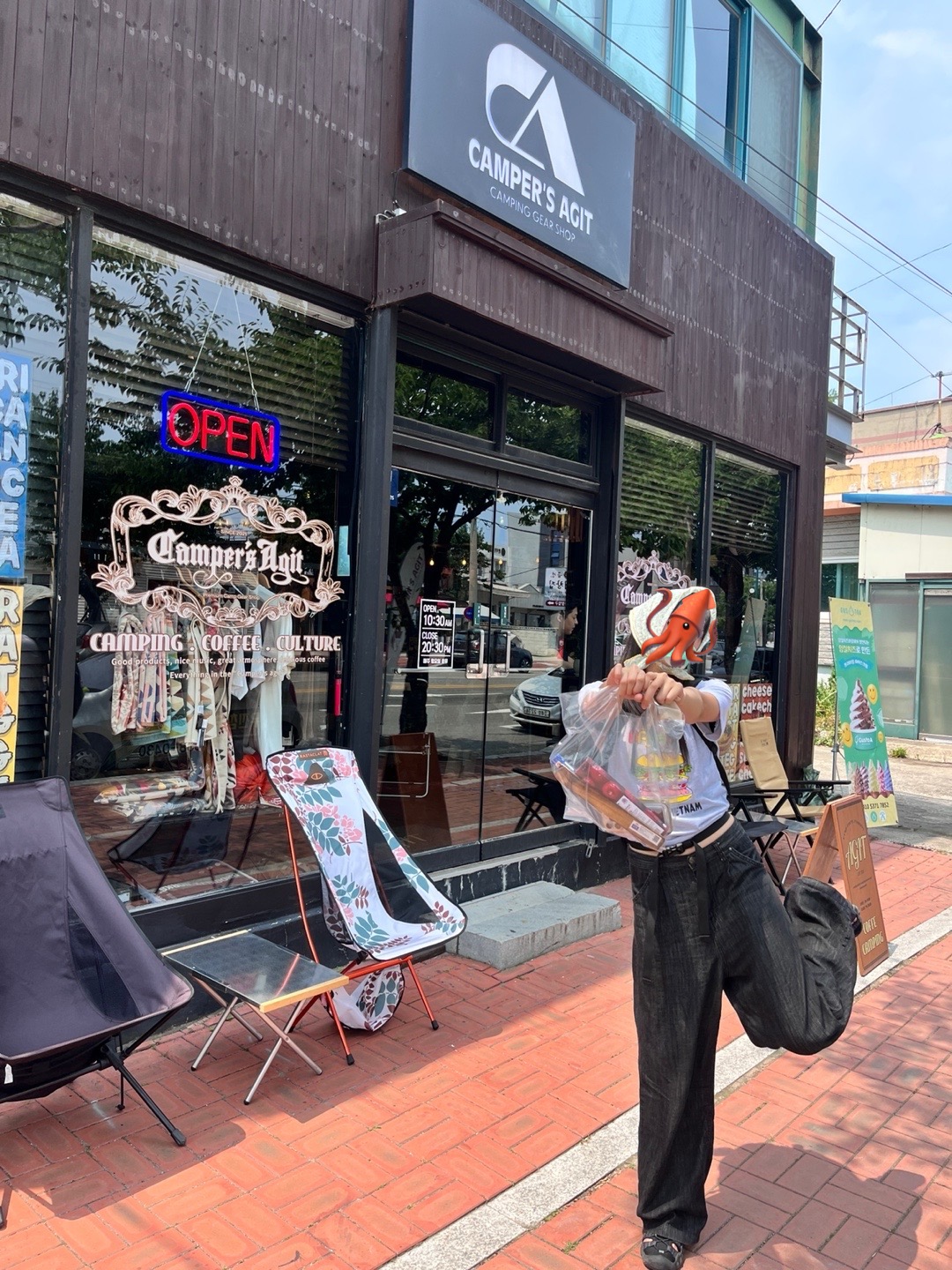 캠핑 컨셉의 인테리어에 다양한 캠핑 용품들도 판매하고 있었습니다.